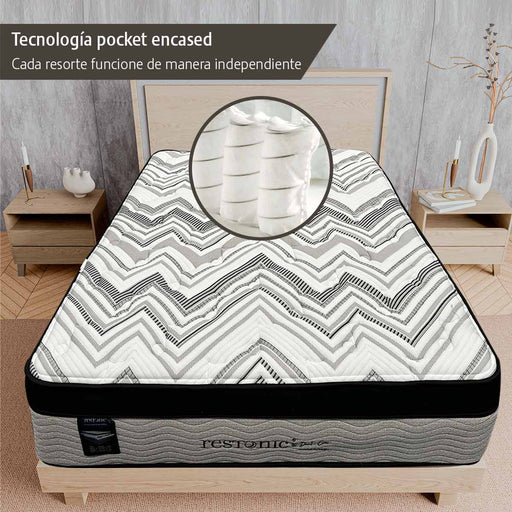 RestonicCaracterísticas Altura aproximada del colchón: 27 cm Altura aproximada de la colchoneta 7 cm Marca Restonic Sistema Worry free. Este mo...