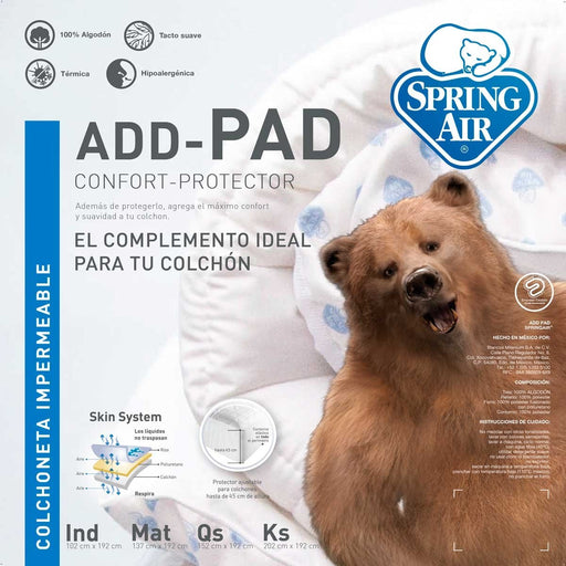 Spring AirDetalles El Protector de Colchón Confort Spring air individual esta diseñado con tecnología de skin system , la cual permite respirar libremente t...